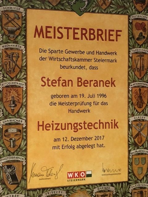 Unser Familienbetrieb wurde schon 1995, drei Jahre nach Herrn Beraneks Konzessions- und Meisterprüfung, gegründet. Herr Beranek legt großen Wert auf persönliche Beratung und wird mittlerweile von seinem Sohn Stefan tatkräftig unterstützt. Stefan ist bereits dreifacher Meister für Gas-, Sanitär-, Heizungs- und Elektrotechnik und hat auch eine Zertifizierung zum ÖKO Energietechniker für Wärmepumpen.